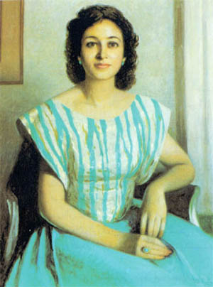 وقد أحب ` بيكار ` مثالنا العظيم محمود مختار فكانت نساؤهما متشابهة الرقة والاتساق والشموع والجمال .. وفى هذه اللوحات كانت الخضرة يانعة الشكل والأفرع حانية والجرار كما القلوب الطيبة والناس كالجمال بقدمين أما الأرض فهى بساط أو سجادة صلاة الكل فوقها خاشع القلب بملامحهم وحركاتهم طقوسا شعورية مقدسة .. إنه عالم طاهر تمناه بيكار لنا فمنحه لنا لوحاته حلما رقيقا.