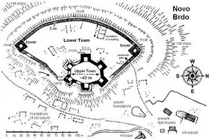 Novo Brdo was one of the largest cities in the Balkans,[1][2] and because of its rich gold and silver mines it was the most important non-coastal city in the Balkans in the 14th and 15th centuries.[3] The Ottomans besieged it without success in 1412 and in 1427[4] using cannons they'd constructed for the 1422 siege of Constantinople.[5]