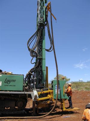 This method of drilling is used to drill the weathered regolith, as the drill rig and steel or tungsten blades cannot penetrate fresh rock. Where possible, air core drilling is preferred over RAB drilling as it provides a more representative sample. Air core drilling can achieve depths approaching 300 meters in good conditions. As the cuttings are removed inside the rods and are less prone to contamination compared to conventional drilling where the cuttings pass to the surface via outside return between the outside of the drill rod and the walls of the hole. This method is more costly and slower than RAB.
