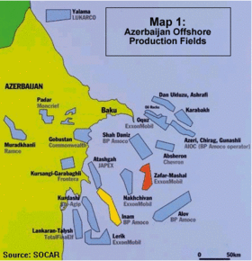 أذري-چيراگ گوناشلي Azeri-Chirag-Guneshli (ACG) هو مجمع كبير لحقول النفط في بحر قزوين, على بعد 120 كم من ساحل أذربيجان. ويشغـِّله كونسورتيوم بقيادة ب پ. ويحتوي مجمع حقول النفط أ چ گ على احتياطات قابلة للاستخراج تـُقدر بنحو 5 إلى 6 بليون برميل نفط. وفي نهاية 2005, كان معدل الإنتاج من ثمانية آبار سابقة الحفر على المنصة حوالي 240,000 برميل يومياً. وقد وصل الإنتاج في 2007 إلى نحو 800,000 ب/ي., ومن المتوقع أن تبلغ 1 مليون برميل بحلول عام 2009.