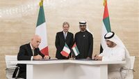 في مارس 2018، وقعت شركتي بترول أبوظبي الوطنية "أدنوك" الإمارتية وإيني الايطالية لاستخراج الغاز اتفاقيتي امتياز وأخرى استحواذ خاصة بمبادلة الغاز بالنفط. وكتب الشيخ محمد بن زايد، ولي عهد أبوظبي نائب القائد الأعلى للقوات المسلحة، عبر صفحته على تويتر قائلا: شهدنا اليوم مع رئيس وزراء إيطاليا توقيع اتفاقيتي امتياز بين "أدنوك" و"إيني" في حقول أم الشيف ونصر وزاكوم السفلي، إلى جانب توقيع اتفاقية استحواذ - مبادلة للبترول على حصة من "إيني" - في امتياز شروق الذي يضم حقل ظهر للغاز الطبيعي في خطوة تعمق الشراكة الاستراتيجية بين بلدينا الصديقين.[20]