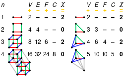 where kn denotes the number of cells of dimension n in the complex.