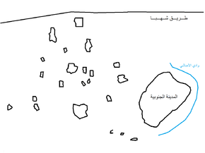 - ^ أ ب ت ث ج ح خ د ذ ر ز س ش موقع خربة الأنباشي الأثري. وسيم الشعراني، السويداء إلى العالم. تاريخ النشر 2007. الولوج 18-10-2012.