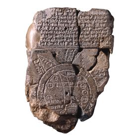 أقدم خريطة للعالم وتسمى Imago Mundi من بابل من 700 - 500 ق.م.. غالباً من سيپـّار، بجنوب العراق.[1] الخريطة كما رممها إكارد أنگر تبين بابل على نهر الفرات, محاطة بأرض دائرية توضح آشور, أرمنيا والعديد من المدن, المحاطة بما تسميه "النهر المالح" (المحيط Oceanus), مع سبع جزر مرتبين حوله كما لو كانوا ليشكل نجمة سباعية.