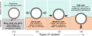التفاعل بين خط الأنابيب تحت الماء وقاع البحر حيث يرقد خط الأنابيب (أربع سيناريوهات محتملة).
