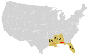 في الولايات المتحدة ، تحدد جزءًا من الحدود بين ولايتي ميسيسيبي ولويزيانا ، ومعظم الحدود بين ألاباما وفلوريدا. قام أندرو إليكوت بمسح هذا التوازي في عام 1797 ، والذي تم تعريفه في معاهدة بينكني قبل عامين على أنه الحدود بين الولايات المتحدة وإقليم غرب فلوريدا الإسباني.