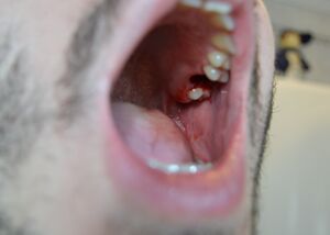 Common risks after any extraction include pain, swelling, bleeding, bruising, infection, trismus (not being able to open as wide as normal) and dry socket. There are additional risks associated with the surgical extraction of wisdom teeth in particular: permanent or temporary damage to the inferior alveolar nerve +/- lingual nerve, causing permanent or temporary numbness, tingling or altered sensation to the lip, chin +/- tongue.[12][13]