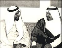 الشيخ خليفة بن حمد آل ثاني، أمير دولة قطر، والشيخ زايد بن سلطان آل نهيان رئيس دولة الإمارات العربية المتحدة.