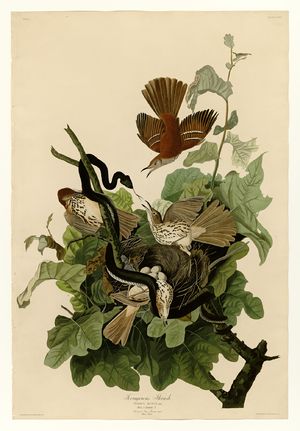 - Flanigan AB. (1971). Predation on Snakes by Eastern Bluebird and Brown Thrasher. Wilson Bulletin. vol 83, no 4.
