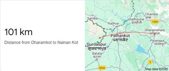 تبعد درمكوت 101 كيلومتر عن الحدود الباكستانية ( قرية نينان كوت، ضلع شكر گره، پنجاب الپاكستان).
