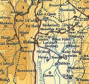 - ^ C. R. Conder and H. H. Kitchener (1881). The Survey of Western Palestine. Vol. I. London: The Committee of the Palestine Exploration Fund. p. 118. Later Israeli maps marked Khirbet Dafna at a different place 1km SE of Dafna (Sheet "Dan", 1:20,000, at 2109/2921, Survey of Israel 1956).