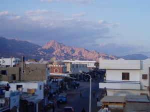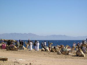 بدو بالقرب من دهب، وتظهر السعودية في الخلفية
