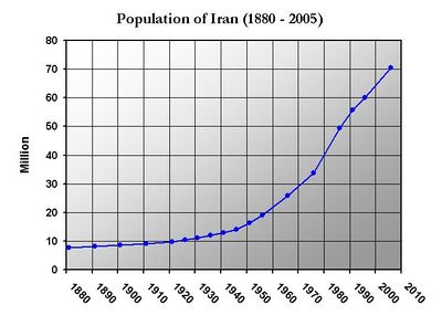 بلغ عدد سكان إيران ما يقارب 70,049,262 نسمة في تعداد 2006، ربعهم تحت عمر 15 سنة. ويسكن معظمهم في جنوب بحر قزوين وفي شمال غرب إيران. أكبر مدن إيران هي طهران (8.6 مليون) ثم مشهد (2.3) ثم أصفهان (1.5) ثم تبريز (1.4) ثم شيراز (1.2).