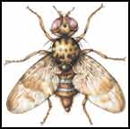 ذبابة فاكهة البحر المتوسط حشرة تتلف الفاكهة و الجوز والخضراوات. وتهاجم أكثر من 200 نوع من الفاكهة والخضراوات المزروعة. وهي تعتبر آفة خطيرة في إفريقيا و أستراليا الغربية و هاواي و برمودا و جامايكا.