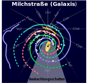 وفي عام 2005 نجح فريق من العلماء من مختلف الدول في تعيين المسافة بيننا وبين منصقة في المجرة تنشأ فيها نجوم جديدة بدقة كبيرة وهي منطقة تسمى ( W3(OH وتوجد في ذراع حامل رأس الغول. وقد استخدمت المجموعة لهذا الغرض مصفوف هوائيات القاعدة العظيم (VLBA) وقاموا بقياس المسافة بأنها 6357 ± 130 سنة ضوئية[1]. وترجع القياسات التي أجريت بواسطة المصفوف إلى قاعدة طولية مقدارها نحو 8000 كيلومتر وتمت القياسات لموجات راديوية تقدر ب 12 جيجا هرتز :
