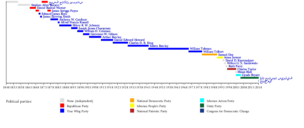 4 years, 313 days | True Whig Party | 1891 | William D. Coleman | |