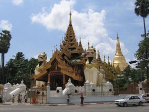 يعد المعبد البوذي «باغودة شوي داغون» Shwe Dagon Pagoda أهم معلم في المدينة وفي عموم الدولة، وهو مجموعة أبراج مكسوة بالذهب من الخارج، ترتفع فوق تل يقع إلى الشمال من مركز المدينة بنحو كيلومترين، ويرتفع أعلى برج فيه إلى 99 متراً. وتحوي المدينة القديمة مئات الباغودات أو المعابد البوذية، التي تعد بالآلاف في عموم مينَمار وتنتشر في المدن والأرياف.