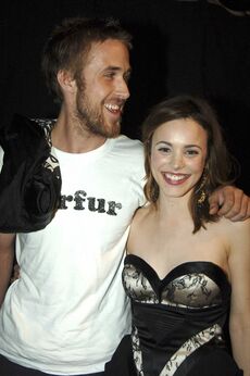 Later in 2004, McAdams starred opposite fellow Canadian Ryan Gosling in the romantic drama The Notebook, based on Nicholas Sparks' novel of the same name. She played Allie Hamilton, a wealthy Southern belle who has a forbidden love affair with Gosling's poor labourer, Noah Calhoun.[18][47] McAdams spent time in Charleston, South Carolina, prior to filming to familiarize herself with the Southern accent,[48] and took ballet and etiquette classes.[31] Filming took place from late 2002 to early 2003.[49] Although McAdams and Gosling became romantically involved in 2005, they had a combative relationship on set.[50][51] "We inspired the worst in each other," Gosling has said. "It was a strange experience, making a love story and not getting along with your co-star in any way."[52] At one point, Gosling asked the film's director Nick Cassavetes to "bring somebody else in for my off-camera shot" because he felt McAdams was being uncooperative.[51] Stephen Holden of The New York Times praised the "spontaneous and combustible" performances of the two leads[53] while Roger Ebert was won over by the "beauty and clarity" of McAdams's performance.[54] Michael Wilmington of the Chicago Tribune declared her "a real discovery" who "infuses young Allie with that radiant, breathlessly winning ingénue grace and charm that breaks hearts".[55] The film grossed over $115 million worldwide.[56] McAdams won an MTV Movie Award and four Teen Choice Awards.[44][57] Entertainment Weekly has said that the movie contains the All-Time Best Movie Kiss[58] while the Los Angeles Times has included a scene from the film in a list of the 50 Classic Movie Kisses.[59] The Notebook has appeared on many Most Romantic Movies lists.[60][61][62][63] "I'm so grateful to have a film that people respond to in that way", McAdams told Elle in 2011. "It was a big deal."[64]