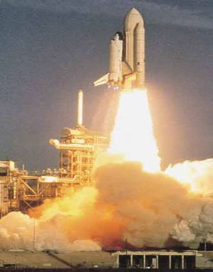 وتختلف طريقة إطلاق مكوك الفضاء قليلاً عن باقي المركبات الفضائية. فلمكوك الفضاء معززات صلبة الداسر، بالإضافة إلى محركات الصاروخ الرئيسية التي تحرق الداسر السائل. وتعطي المعززات والمحركات الرئيسية القوة الدافعة اللازمة لانطلاق الصاروخ من منصة الإطلاق. وبعد مرور دقيقتين أو أكثر، تنفصل المعززات من المكوك وتعود للأرض بوساطة مظلة. وتستمر المحركات الرئيسية في الاشتعال حتى يصل المكوك إلى سرعته المدارية. وتساعد محركات صغيرة أخرى المكوك على الوصول إلى سرعته المدارية.
