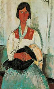 امرأة غجرية مع طفلها للفنان أميديو موديلياني 1919م، لوحة زيتية على القماش. 73x116 سم.