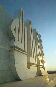 حد المعالم الجمالية في مدينة تبوك السعودية كتب عليها « لا إله إلا الله » بشكل زخرفي جميل.