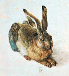 لأرنب الصغير من رسم ألبرخت دورر حوالي عام 1502م، رسم بالألوان المائية. 25x 23سم.
