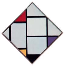 تركيب المُعَيَّن في مربع للفنان بيت موندريان 1925. رسمت بالزيت على القماش. 102x102سم.