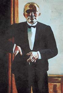 صورة ذاتية بالسترة السوداء للفنان ماكس بيكمان 1927م. رسمت بالألوان الزيتية على قماش القِنَّب.