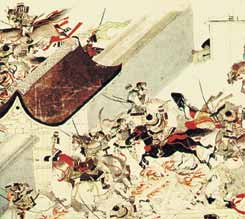 تفاصيل حريق قصر سانجو لفنان ياباني غير معروف. أواخر القرن الثالث عشر الميلادي. لوحة بالحبر على الورق بارتفاع 41سم.