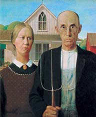 القوطية الأمريكية للفنان جرانت وود 1930م. لوحة زيتية مقاس 63x76سم.