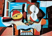 المندولين والقيثار من رسم بابلو بيكاسو 1924م. زيت ورمل على مشمع. المساحة 2,03x1,43م.