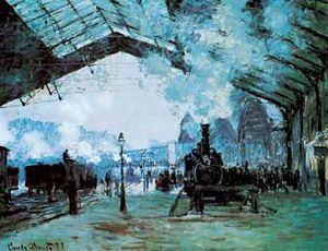 محطة سان لازار القديمة في باريس، للفنان كلود مونيه، 1877. رسم بالزيت على القماش. 80x60سم.