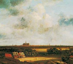 منظر لهارلم رسمه جاكوب فان روزديل حوالي عام 1670م. زيت على مشمع. 62x56 سم.