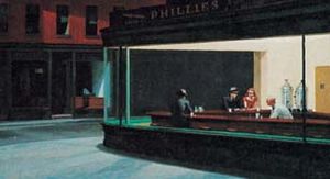 صقور الليل للفنان إدوارد هوبر 1942، رسمت بالزيت. 153x84سم.