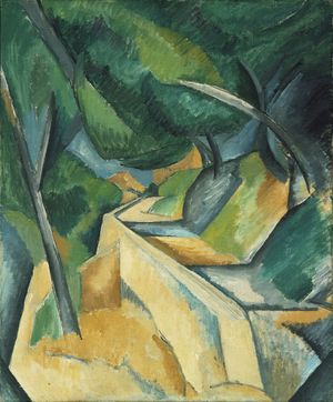 طريق بالقرب من ليستاك للفنان جورج براك، 1908. رسمت بالزيت على القماش. 50x60سم.