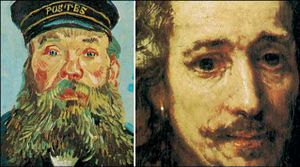 اللوحات الزيتية يمكن أن تُرسم بالطريقة غير المباشرة أو الطريقة المباشرة. وباستعمال الطريقة غير المباشرة رسم رمبرانت بالتدريج (إلى اليمين) وذلك بمسح لون واحد على لون آخر بكل لطف. وباستعمال الطريقة المباشرة (إلى اليسار) قام الفنان فان جوخ بالرسم بسرعة بضربات فرشاة فردية لكي تقف واضحة.