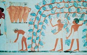 حصاد العنب، لفنان مصري قديم غير معروف، رسمها على الجدران حوالي عام 1425ق.م، بارتفاع 31سم تقريبًا.