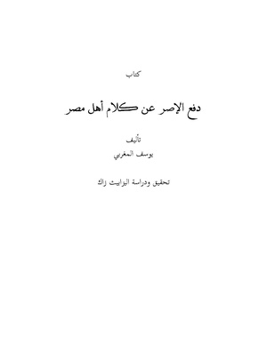 دفع الاصر عن كلام أهل مصر كتاب من تأليف يوسف المغربي