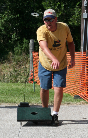 في مدينة سانت لويس، مزورى، توضع الصناديق على مسافة 25 قدمًا من بعضها البعض وتحتسب نقاط اللعب عند 15 نقطة. وفي اللعبة التي بها ثلاثة ثقوب، توضع ألواح الرمي على بعد 10 أقدام من بعضها البعض. وفي بنسلفانيا، تكون هذه اللعبة بدون ألواح ويحتسب الهدف عندما تكون الحلقة على بعد بوصتين من أنبوبة بلاستيكية موضوعة على الأرض أو داخلها بحيث تكون المسافة بين الأنبوبين 21 قدمًا. وتُمنح نقطة واحدة لحلقة اللاعب الأكثر اقترابًا من الأنبوبة ونقطتان "للحلقة المعلقة" (الحلقات التي تكون بارزة فوق الحافة بحيث يمكنك رؤية القاع من الوسط)، وثلاث نقاط "لرمية الطوق".