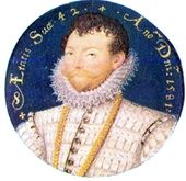 ![]() Robert Dudley, Earl of Leicester, c. 1564. In the background are the devices of the Order of Saint Michael and the Order of the Garter; Robert Dudley was a knight of both. | |