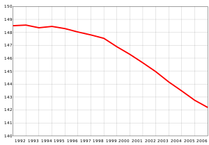 الأمر اختلف جذرياً في العقد الأخير من القرن المنصرم, إذ فاقت الوفيات، ومعدلها %14.9 المواليد ومعدلها %9.6، أي أن الوفيات فاقت المواليد بنسبة %5.3. وتجدر الإشارة إلى أن هذا التناقص يشمل الروس خاصة، بينما معدل المواليد لدى الأعراق الأخرى ولاسيما الإسلامية أعلى من معدل الوفيات ويقدر بـنحو 10ـ %12.
