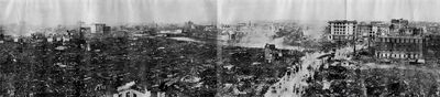 At 11.55 a.m. ship commenced to tremble and vibrate violently and on looking towards the shore it was seen that a terrible earthquake was taking place, buildings were collapsing in all directions and in a few minutes nothing could be seen for clouds of dust. When these cleared away fire could be seen starting in many directions and in half an hour the whole city was in flames.[20]