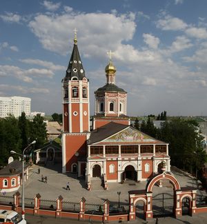 ساراتوڤ (Saratov ؛ UK []səˈrɑːtɒf[] sə-RAH-tof,[13] الأمريكي []ʔtəf[] --təf;[14][15] روسية: Саратов, تـُنطق [sɐˈratəf] ( استمع)) هي مدينة و المركز الاداري لأوبلاست ساراتوڤ، روسيا، وميناء رئيسي على نهر الڤولگا يقع أعلى (شمال) ڤولگوگراد. As of the 2021 Census[تحديث]، بلغ تعداد ساراتوف: 901,361 نسمة، مما يجعلها 17th-largest city in Russia by population. Saratov is 389 كيلومتر (242 mi) north of Volgograd, 442 كيلومتر (275 mi) south Samara, and 858 كيلومتر (533 mi) southeast of Moscow.
