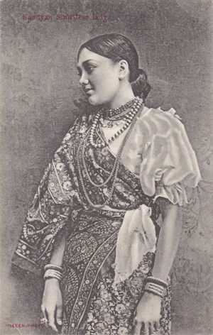 Sinhalese woman wearing a traditional Kandyan sari (osaria).