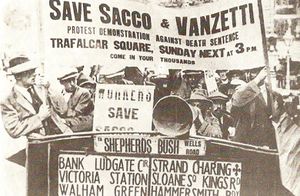 قالب:Anarchism US Nicola Sacco (: [niˈkɔːla ˈsakko]; April 22, 1891 – August 23, 1927) and Bartolomeo Vanzetti (: [bartoloˈmɛːo vanˈtsetti, -ˈdzet-]; June 11, 1888 – August 23, 1927) were Italian immigrants and anarchists who were controversially convicted of murdering Alessandro Berardelli and Frederick Parmenter, a guard and a paymaster, during the April 15, 1920, armed robbery of the Slater and Morrill Shoe Company in Braintree, Massachusetts, United States. Seven years later, they were executed in the electric chair at Charlestown State Prison.