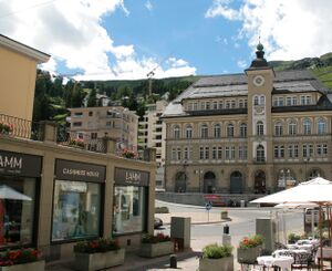 St. Moritz (also ألمانية: Sankt Moritz, رومانش: San Murezzan , إيطالية: San Maurizio,[أ] فرنسية: Saint-Maurice) is a high Alpine resort town in the Engadine in Switzerland, at an elevation of about 1،800 متر (5،910 ft) above sea level. It is Upper Engadine's major town and a municipality in the district of Maloja in the Swiss canton of Graubünden.