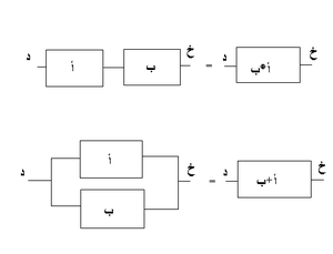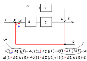 إذا اعتبرنا د وخ مداخل ومخارج المنظومة وأ وب دالة التحويل النظام وإذا ربطنا النظم أ وب كما هو مبين في الصورة فإن دالة التحويل تصبح كما هو مبين أسفله.