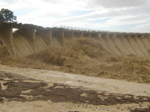 وقد لوحظ أيضاً حدوث تراكم للطمي أمام السد مما يؤدى إلى انخفاض في السعة التخزينية المائية للسد.