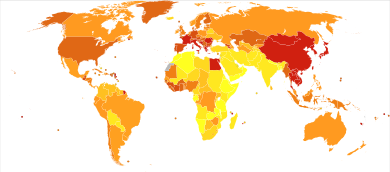 - ^ أ ب ت Bray F, Ferlay J, Soerjomataram I, Siegel RL, Torre LA, Jemal A (November 2018). "Global cancer statistics 2018: GLOBOCAN estimates of incidence and mortality worldwide for 36 cancers in 185 countries". CA. 68 (6): 394–424. doi:10.3322/caac.21492. PMID 30207593. S2CID 52188256.