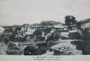 The Ottoman Turks captured Servia in 1393. In 1519 (Hijri 925) the town had 49 Muslim and 646 Christian households; it was a zeamet of Mevlana Ahmet Çelebi.[16] In 1745 the seat of the Bishop of Servia was moved to the nearby city of Kozani being renamed as the Holy Diocese of Servia and Kozani. At the start of the Greek revolution in 1821, the Ottomans ordered Turkish and Albanian irregular military to plunder the region and prevent the formation of links with Greek revolutionaries of the Olympus and Vermio regions.[17] After the collapse of the Greek revolution in Macedonia, revolutionaries of the region moved to the South, where they joined fforces with Greeks in the Peloponnese.[18] A prominent revolutionary from the town was Zisis Sotiriou. In 1864, the town became the seat of the Sanjak of Serfiğe in the Manastir Vilayet, and the town was known as Serfiçe (also written as Serfidze) in Ottoman Turkish.